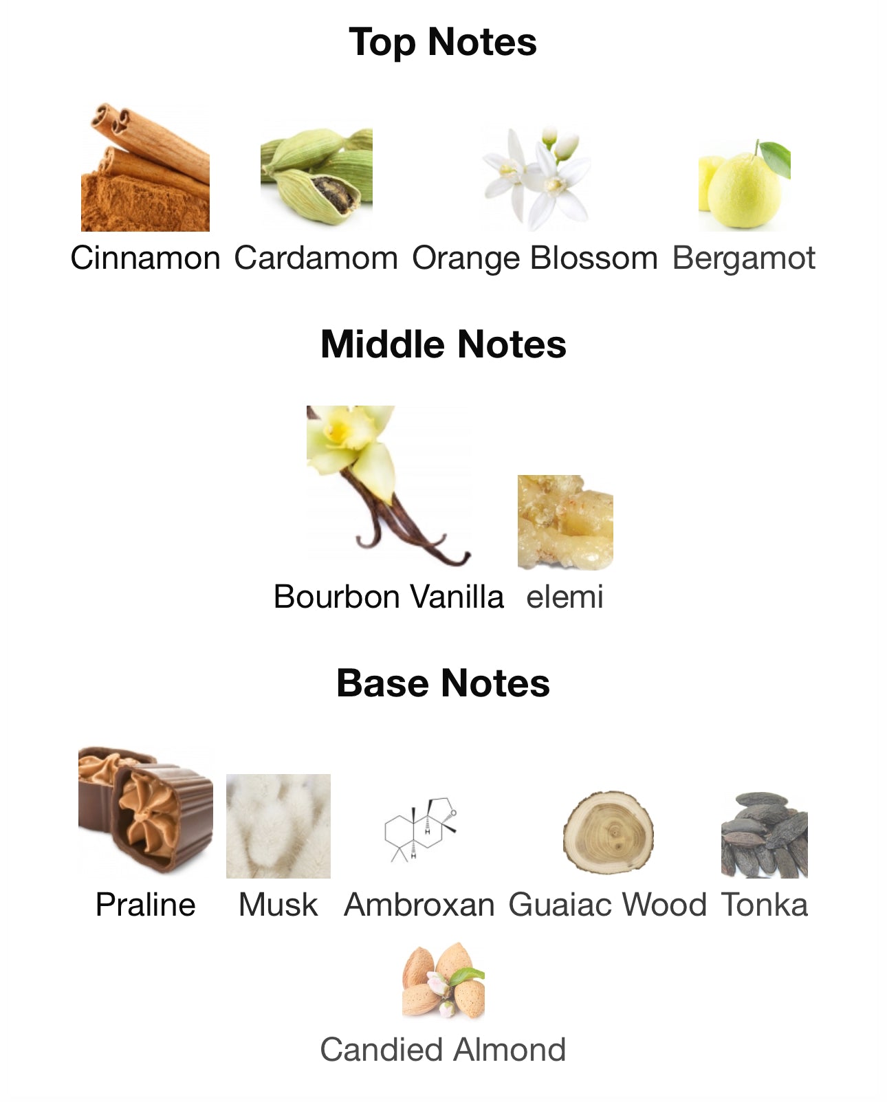 Base notes: Praline, musk, ambroxan, guaiac wood