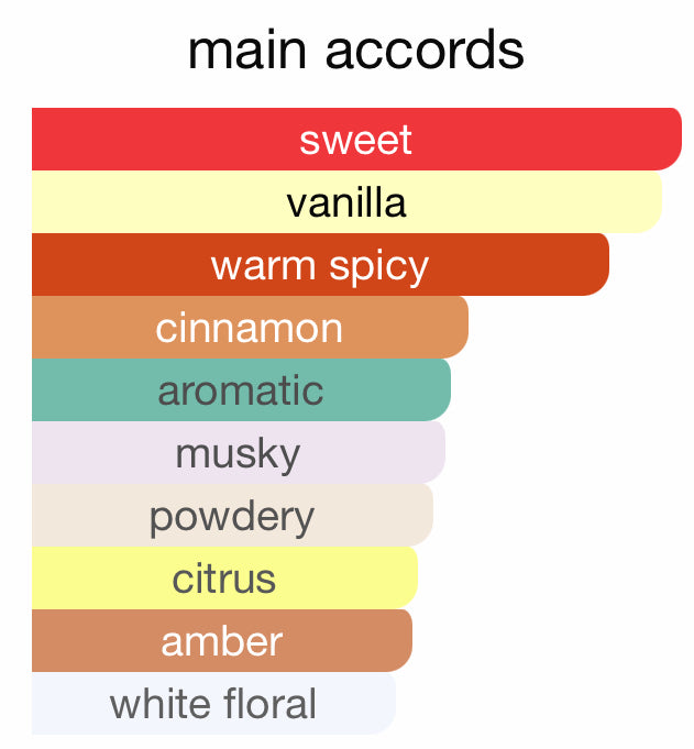 Top notes: Cinnamon, cardamom, orange blossom, bergamot